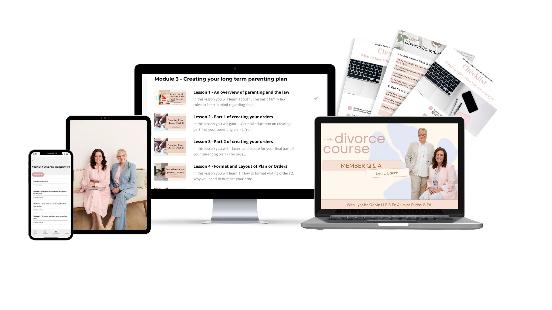 The Divorce Blueprint is the course I desperately wish had existed when I was going through my divorce. It's everything Mum and I learned from my experience, from her 35 years in family law, and from helping hundreds of members just like you get through their divorce with clarity, confidence, thousands of dollars still in their pocket and their sanity intact.