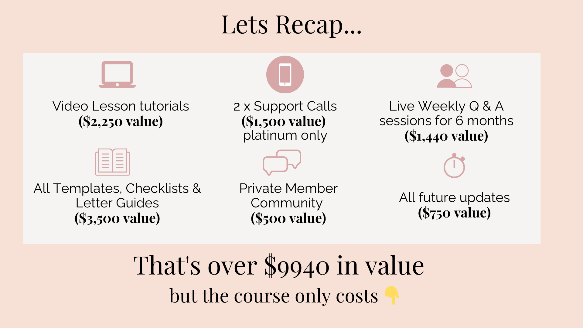 Since doing the course I feel good and ready for action. Before I was totally overwhelmed but now I have a “I can do this attitude”. It has totally saved on lawyers fees because It has helped me minimise the need to book appointments with my lawyer as I feel much more equipped with the knowledge I need. Thanks so much for your help and knowledge. I have recommended this course to so many people - 2022